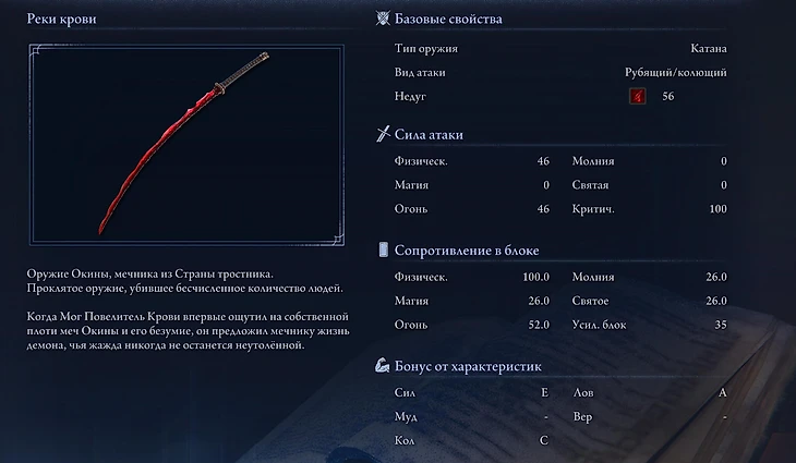 Реки крови (эпическая катана): идеальный клинок для билда на кровотечение.