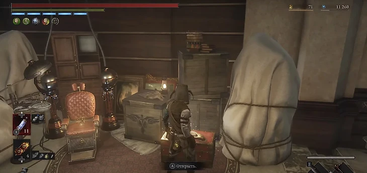 В центре локации – схватка с мини-боссом-алхимиком, медлительным, но мощным тяжеловесом, чьи удары оглушают, однако, оставляют его уязвимым после атаки. Среди ценных находок – редкие материалы и артефакты, которые помогут усилить героя и раскрыть тайны «Легиона». Особое внимание заслуживают бои с Арлекином, использующим огненные факелы и пламя, а также с Маркионой – боссом, управляющим опасной марионеткой с непредсказуемыми атаками.