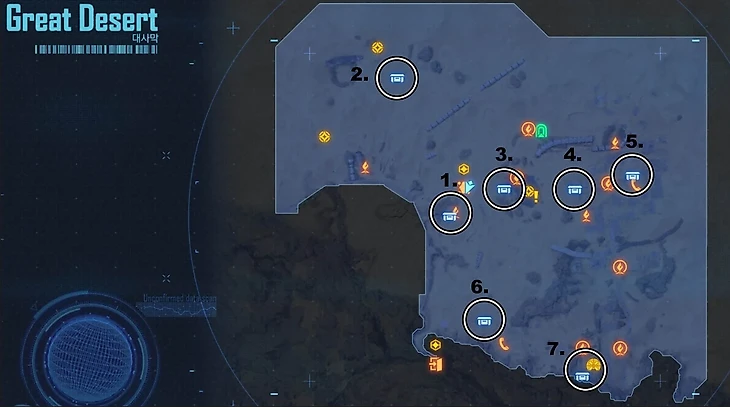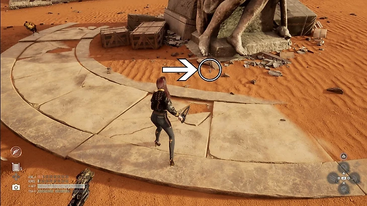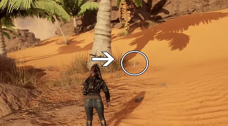 Чтобы отыскать шестой Звездный разрыв в Великой пустыне, сначала направляйтесь к отмеченной точке на юго-западе карты. Оттуда двигайтесь в северо-восточном направлении – вскоре вы заметите скопление статуй. Ищите Звездную слезу прямо в центре этого круга, она лежит на песке среди фигур.