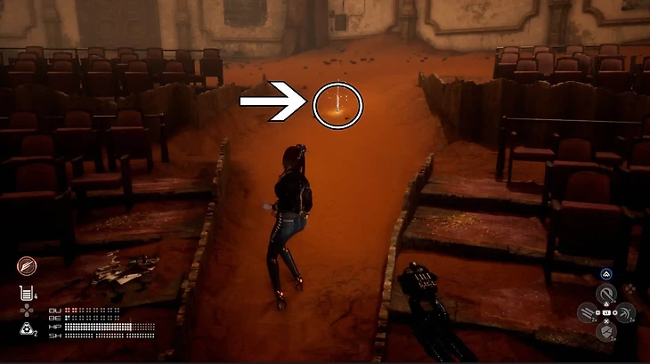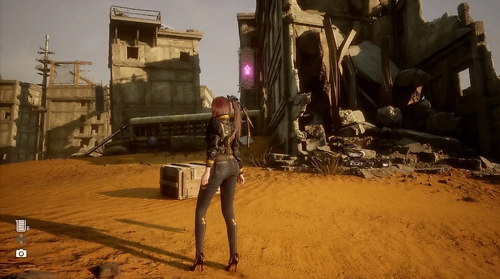 Четвертый Звездный разлом в Великой пустыне можно найти в районе восточных строений. Лучше всего начать путь с разрушенного снабженческого лагеря, который расположен на крыше. Спуститесь на уровень ниже и двигайтесь на север, к зданию с врезавшимся в него автобусом. Над входом будет заметна фиолетовая неоновая стрелка – она поможет сориентироваться.
