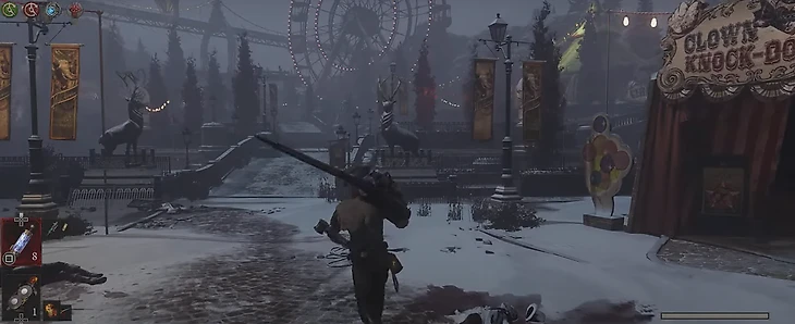 После покупки ключа вернитесь назад – ко входу в Карнавал, где расположен мини-аттракцион с вывеской «Clown Knock-Down» (также может быть переведено как «Сбей Клоуна»). Обойдите палатку справа, и вы увидите небольшую деревянную дверь, скрытую за декорациями.