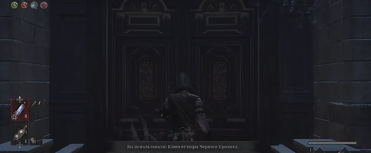 После того как вы откроете первую нору Черного Кролика и получите из сейфа Маску Эксцентрика и Охотничью одежду «Пронзающая смерть», важно сразу же надеть оба предмета через инвентарь. Это действие автоматически активирует вторую фазу квеста. Обратите внимание: если вы не экипируете оба предмета одновременно, ключ не появится. Только полное облачение открывает доступ к следующему шагу.