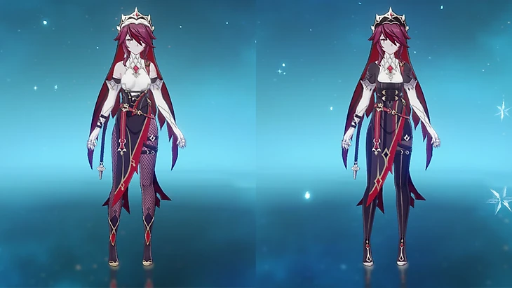 Розария – третья участница «понерфленного» клуба, получившая костюм с закрытым декольте. Скин можно открыть при получении Розарии.