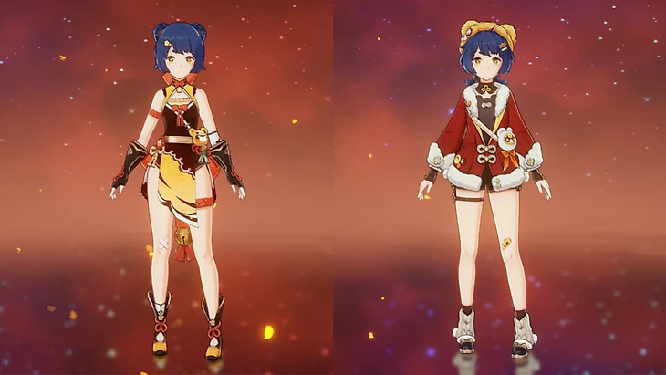 Новогодний костюм Сян Лин приурочен к Празднику морских фонарей в патче 5.3. Его раздавали бесплатно за участие в ивенте, сейчас его можно купить за 1680 кристаллов сотворения.