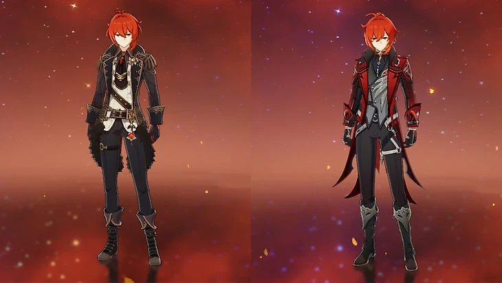Дилюк – единственный обладатель пятизвездочного облика. Костюм «Алая ночь» не только меняет одежду, но и добавляет новые анимации, эффекты и озвучку персонажу. Его можно приобрести за 2480 кристаллов сотворения.
