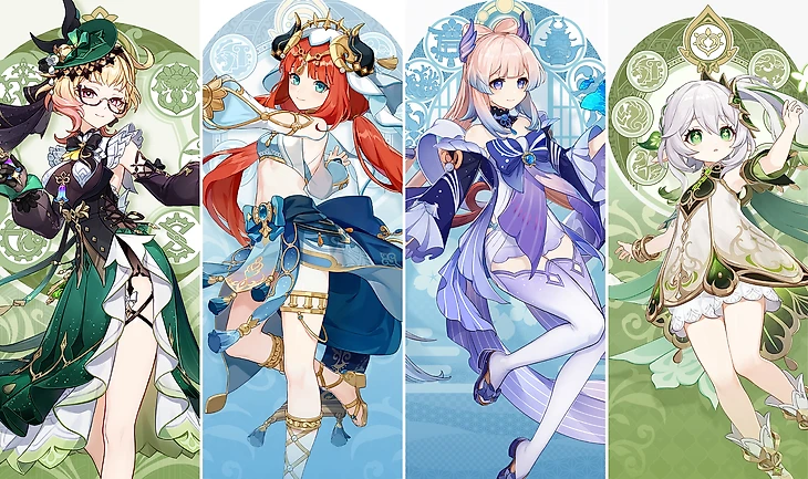 Если хочется поиграть чем-то кроме Горения. Урон самой Эмилии в данном случае просядет, но зато она даст стабильный статус. Кокоми поддерживает Гидро и лечит, Нилу превращает реакции в усиленные бутоны. Команда будет неплохо работать в мульти-таргет на аренах с множеством врагов, но важно дать одному из Дендро героев «Воспоминания дремучего леса» (например, Эмилии), чтобы срезать резисты от Дендро. На место Нахиды подойдет Коллеи, хоть она и не даст столько баффов.