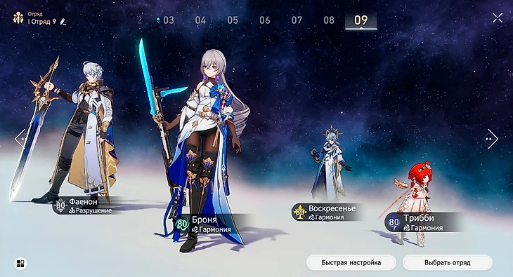 Премиум-отряд для Фаенона в «Хонкай Стар Рейл» состоит из трех саппортов. Воскресенье и Броня – его лучшие напарники, потому что все их навыки направлены на создание ядер для ульты Фаенона, а также они немедленно продвигают его действие, и он сам генерирует себе ядро ударом. Трибби или Цифер тоже раздают баффы, вы можете выбрать одну из них – Трибби повышает урон Фаенона, а Цифер сама наносит много урона ультой.