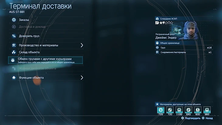 Доступные грузы от других игроков можно посмотреть в меню терминала узла, в разделе «Обмен грузами с другими курьерами».