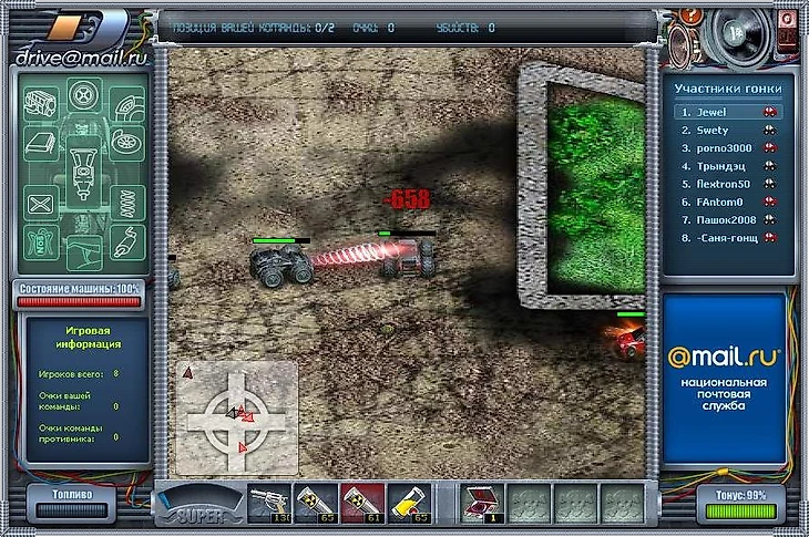В игре было 5 (сначала 4) города. В одном тусовались только новички. Другой был центром, где больше всего людей. В третьем можно было купить эксклюзивные детали и прокачать свои машины. Четвертый был городом торговли – только там можно было писать в чат предложения о купле-продаже. И между этими городами мы ездили на собственном трейлере, попутно отстреливая всех, кто встретится нам на пути.