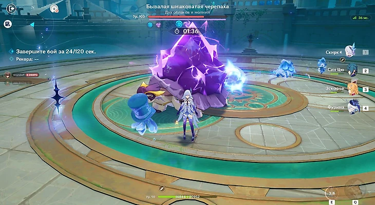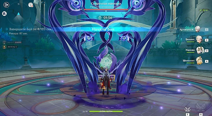 Папилла умеет превращаться в других боссов – геовишапа, магу кэнки, различные гипостазисы и так далее. Если не взять персонажей с альтернативным спринтом, можно потратить половину времени на игру в догонялки с боссом. Поэтому желательно иметь в команде если не дамагера, то хотя бы одного саппорта, способного быстро добежать до другого края арены. Либо брать саб-дпс не от совместных атак – как, например, Сян Лин, Фурина и так далее.