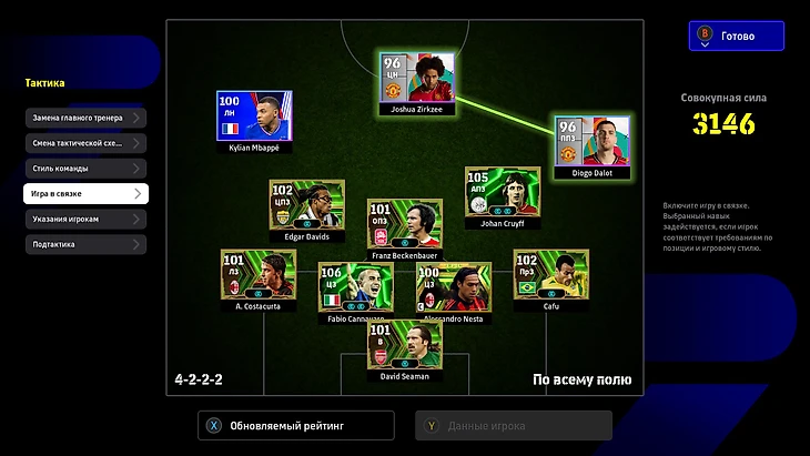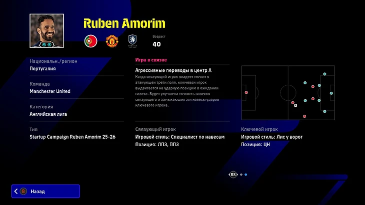 Но облик – это не главное обновление менеджеров. Тренерам дали уникальный навык «Игра в связке». Он создает линк между двумя футболистами с определенными позициями и игровыми стилями и усиливает их характеристики в матче. Например, Рубен Аморим любит агрессивные переводы в центр, а его идею выполняют Диогу Далот и Джошуа Зиркзе.