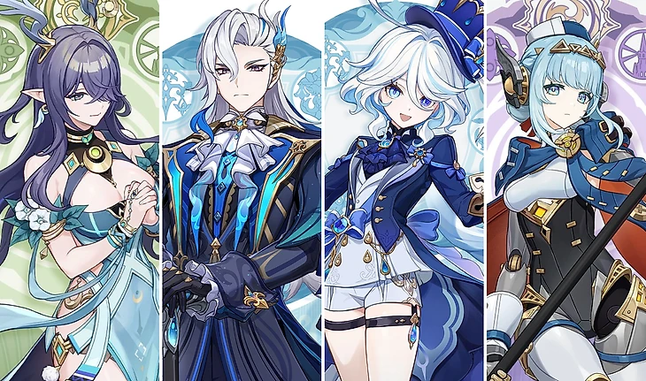 Гибридная группа на Цветение с Гидро-ДПС. Лаума баффает реакции и снижает резисты к Гидро, Невиллет как основной дамагер наносит Гидро-урон и триггерит бутоны, Фурина усиливает урон и добавляет Гидро-аппликацию, Инеффа дает синергию.