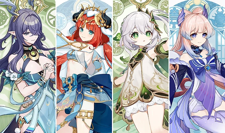 Команда с упором на Цветение и Лунную бутонизацию. Лаума и Нахида дают стабильную Дендро-аппликацию вне поля, Нилу усиливает бутоны и наносит урон, а Кокоми обеспечивает Гидро-статус, лечение и баффы. Это позволяет Лауме баффать реакции через Мастерство стихий и снижать сопротивления врагов.
