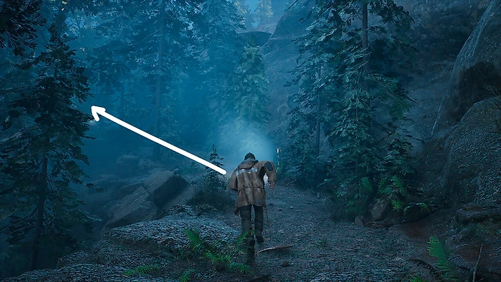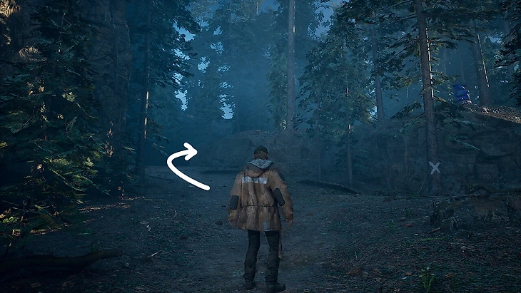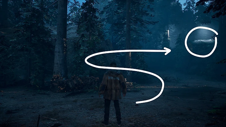 Когда вы увидите развилку с паллетами, то издалека уже можно увидеть лагерь. Просто поднимитесь туда.