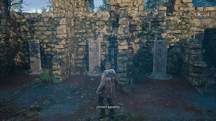 Если вы знакомы с головоломками из Skyrim, то сразу разберетесь. Вставьте ключ в светящийся постамент, найдите правильный порядок символов или вращайте символы, чтобы было как на картинке – огонь, глаз и кирка.