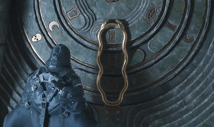 В Hell Is Us в первой обучающей локации лесов Сенедра вы столкнетесь с поиском ключа от БТР. Чтобы войти в эту пещеру, нужно решить одну из загадок в стиле Skyrim, и внутри после катсцены будет ждать еще одна «скайримская» загадка с драконьими дверями. Только здесь использованы символы ада, башни, черепов, луны и так далее.