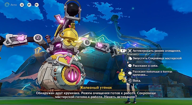 Поговорите с железным утенком и выберите в диалоге «Активировать режим очищения», чтобы перейти к сражению с боссом.