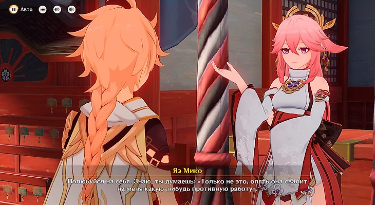 В журнале квестов отыщите задание «Истории путешествий: Предначертание судьбы» и послушайте, что Яэ Мико говорит о новых правилах работы храма.