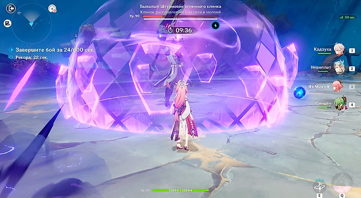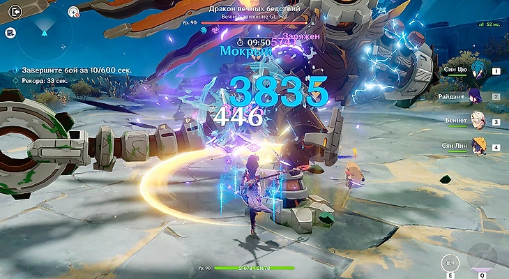 Также можно попробовать стратегию с двумя дамагерами разных стихий. Бить вторым дамагером, пока не появится надпись о том, что сопротивление повысилось, и уже наносить урон первым. В качестве второго стоит брать дамагера, у которого ульта наносит повышенный урон – Тарталью, Райдэн, Аяку, Ху Тао и так далее.