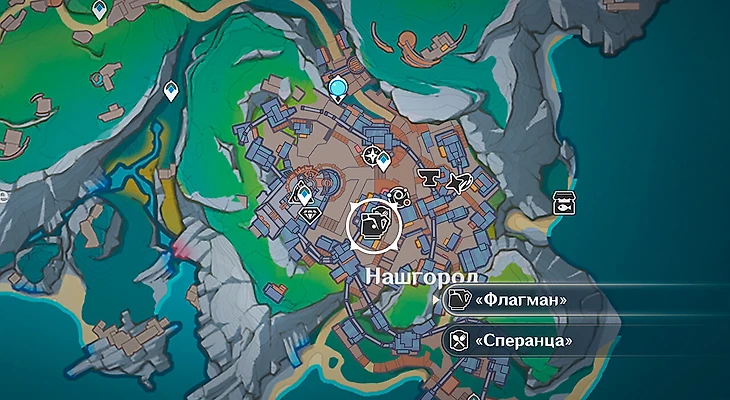 Выполните задание «К маяку», которое откроет местную систему подношения печатей. После этого можно приступить к выполнению задания. Сам квест расположен на месте, показанном на скриншоте (у котелка), но сперва нужно отправиться в Нашгород для подготовки.