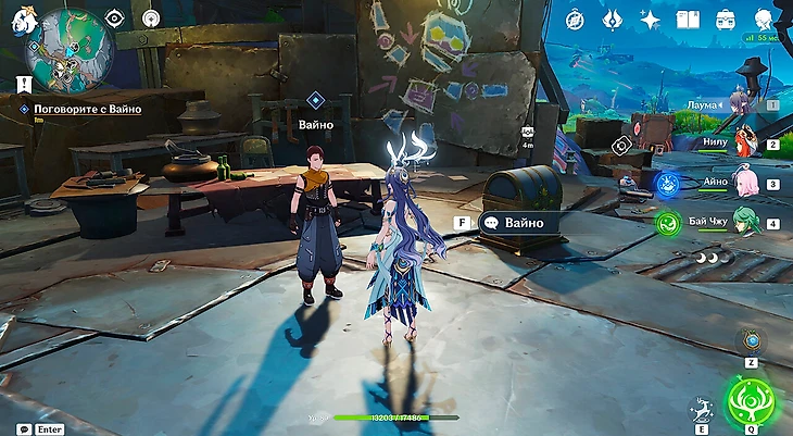 Подойдите к персонажу и поговорите с ним. Его зовут Вайно, он придумал мини-игры для развлечения, и ему нужны тестировщики. Согласитесь пройти его испытания и приступайте к игре.