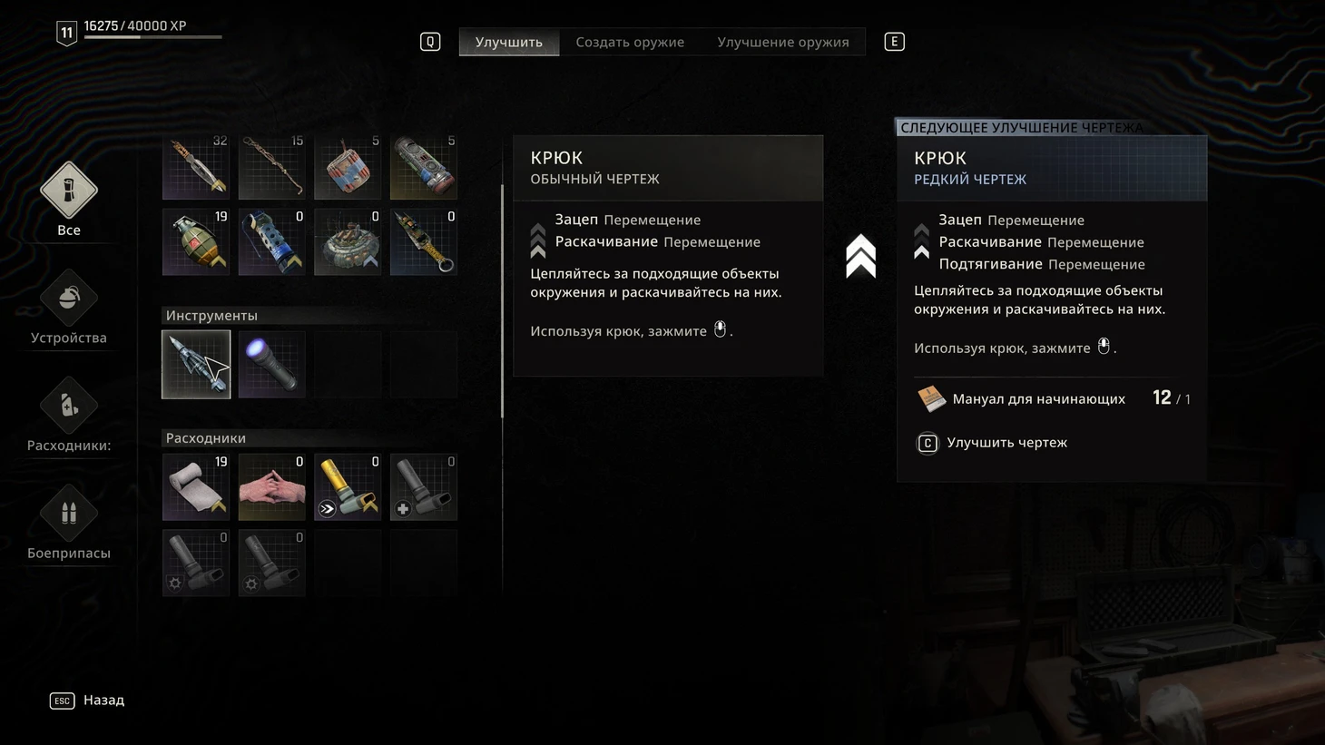 По сравнению с первой частью в The Beast функционал крюка-кошки несколько слабее и зависит от апгрейдов, поэтому по возможности прокачайте её сразу же до максимума у ближайшего верстака. Таковой можно найти сразу же на базе тех, кто выдал вам крюк-кошку.