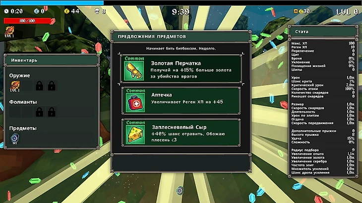 Шутками полон и текст игры: после смерти вам советуют «гитгуд», а одни из полезных артефактов – «пивко» и «боргар» (смешное название бургера). Даже название игры – мем. Ведь bonk – это смешной звук удара деревянной палки из мультиков.
