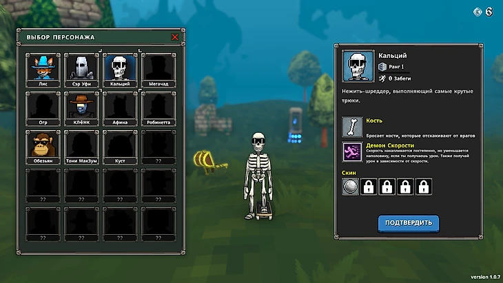 Главный элемент пиара игры – мемы. Шутки, отсылки, узнаваемые образы из интернета. Помимо рыцаря и волшебника, обыденных для фэнтези-сеттинга, поиграть в Megabonk можно за крутую обезьяну в солнечных очках (умеет лазить по стенам!), Гигачада и того самого шустрого скелета на скейтборде (его зовут Кальций, и он чуть ли не главный элемент пиара игры).