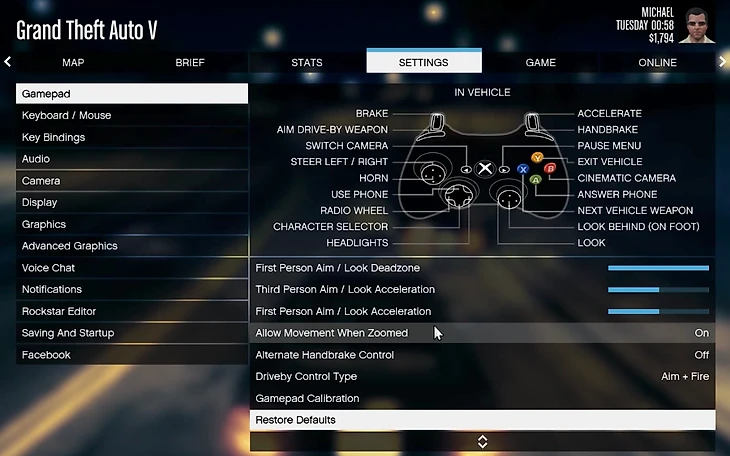 Запустите GTA 5. В настройках игры перейдите в раздел Controls и выберите «Gamepad» в качестве устройства управления.