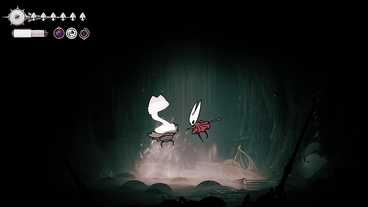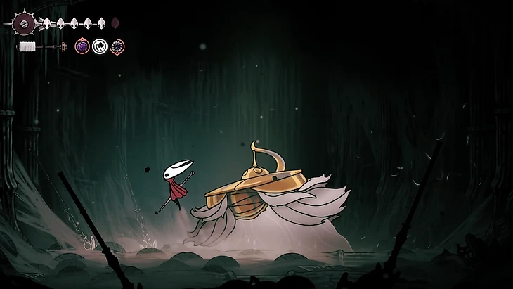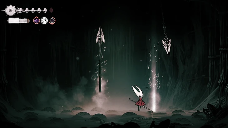 Следите за нитями света из-под земли – это предупреждение. Копья атакуют перпендикулярно, затем отслеживают позицию Хорнет и атакует сверху под углом. Не прыгайте в одном направлении дважды, чтобы не попасть в ловушку.