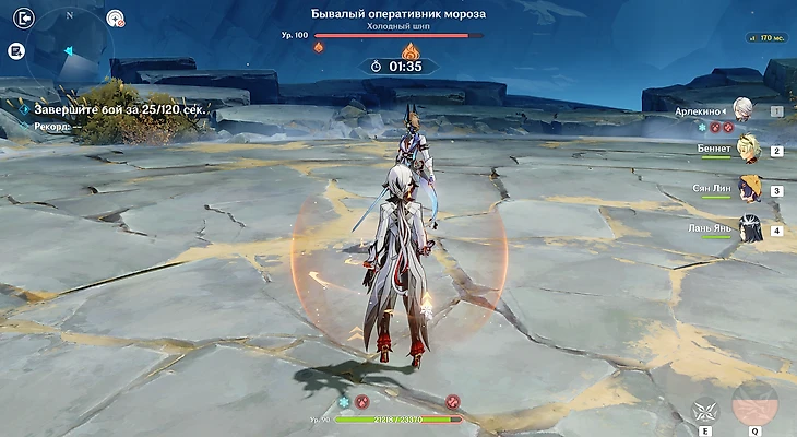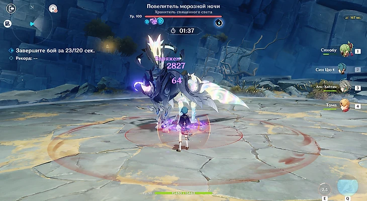 Первого босса проходите средней по силе командой через реакции Пар/Таяние или Лунные составы. Можно использовать Скирк с премиум командой на 5 сложности.