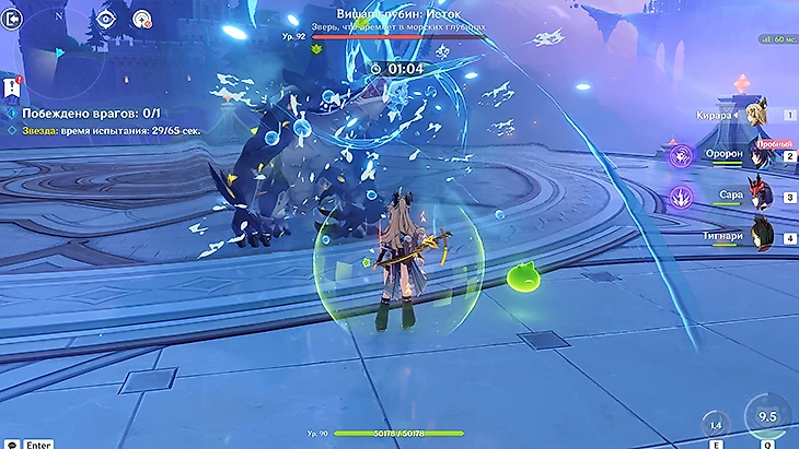 Босс окружает себя толстым Гидро щитом, сквозь который почти не проходит урон. Более того, он также поглощает энергию ваших персонажей в зоне действия, а если ее нет, то высасывает HP.