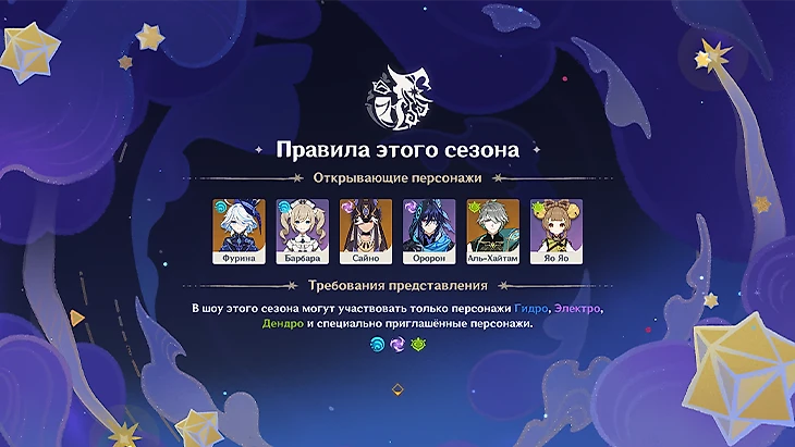 17-й сезон Театра Воображариум продлится до 30 ноября. Играть можно исключительно за персонажей трех стихий: Гидро, Электро и Дендро, а также за специальных гостей.