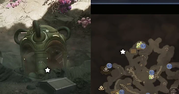 Для этой части придется попотеть: начните с заброшенного автономного экстрактория и поднимайтесь по разрушенным рельсам на юг, к скале. Когда тропа оборвется, заберитесь на камни слева, следуя вверх. Обойдите уступы, продолжите по новым рельсам, затем снова на камни – и вот вы на верхней площадке. Жукозавры караулят, так что используйте стелс: капсула слева, а катушки на земле. Это путь истинного исследователя!