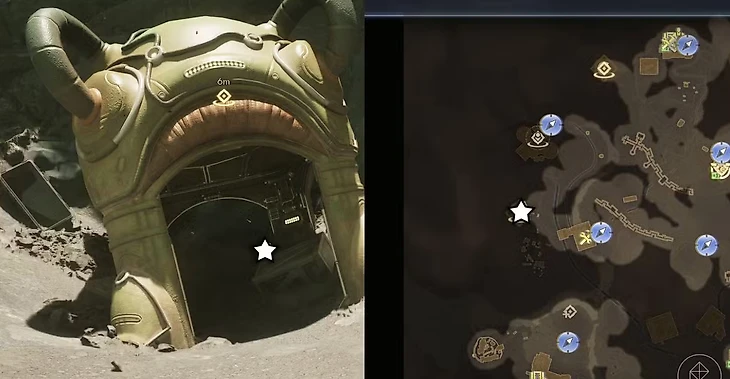 Начнем с легкой разминки: 2 катушки валяются на земли у самой десантной капсулы, расположенной к юго-западу от точки быстрого перемещения в приюте «Милость Матриарха». Это отличное место для старта – просторная территория, где можно оглядеться и убедиться, что поблизости нет неприятностей. Соберите их быстро!