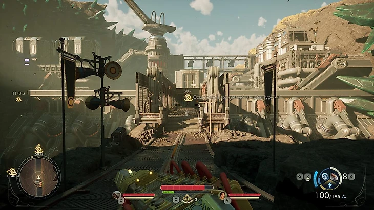Вернитесь к зданию Operations и снова поверните налево, затем поднимитесь на широкий промышленный лифт. Наверху вас встретит адепт Даблдэй. Она попросит исправить утечку зирания. Согласитесь – выполнение задания продвинет расследование и принесет полезную награду.