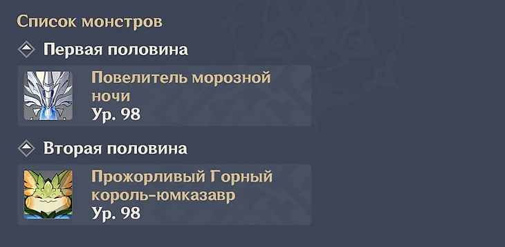 В первой волне появляется Прожорливый горный король юмказавр. У него повышенное Дендро сопротивление и слабость к Пиро.