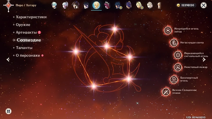 Созвездия для каждой стихии персонажа зарабатываются разными путями: