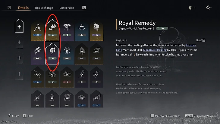 • Внутренние пути: Royal Remedy, Restoring Blossom, Esoteric Revival, Mending Loom