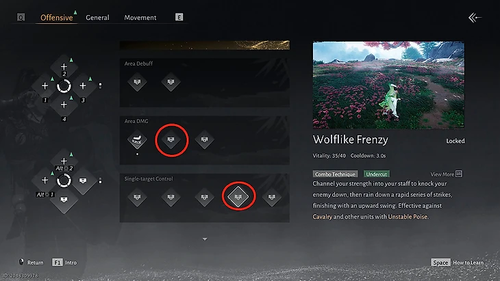 Этот билд подойдет игрокам, которые уже немного изучили механики и смогут понимать, сколько стаков кровотечения на враге. Откройте фиолетовый внутренний путь Wolfchaser’s Art (можно получить за прохождение Heavenquaker Spear – Sanctum в начале игры), чтобы эффективнее стакать кровотечение. Используйте заряженную (R) атаку мечом, чтобы наложить кровотечение до 5 стаков, потом переключитесь на копье и забаффайте себя, а потом обратно переключитесь на меч и нанесите огромное количество урона.