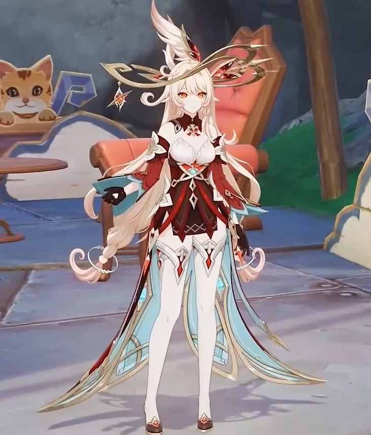 А на трансляции к версии 6.2 раскрыли ее модельку, где она предстала как зрелая ведьма с высокой моделькой, длинными светлыми волосами и широкополой шляпой. Уши у нее эльфийского типа, прямо как у Кли.