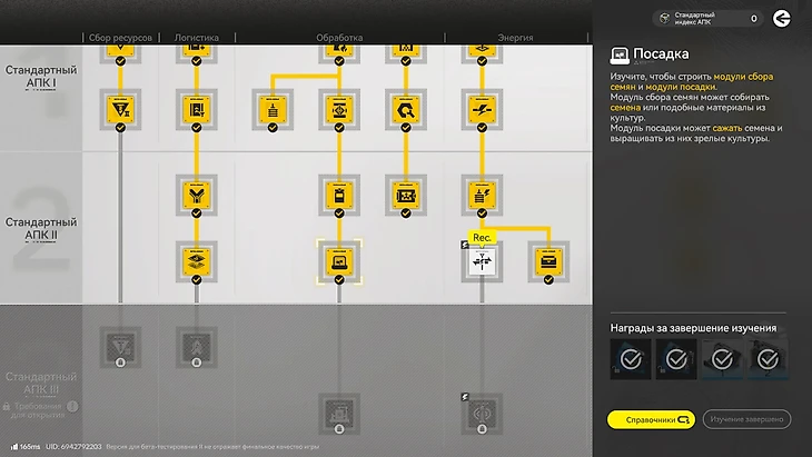 После изучения технологии нажмите на нее еще раз и выберите желтую кнопку «Справочники». Вы перейдете в раздел тестовых забегов, только для производства – в них обучат пользоваться установленными машинами и дадут немного наград.