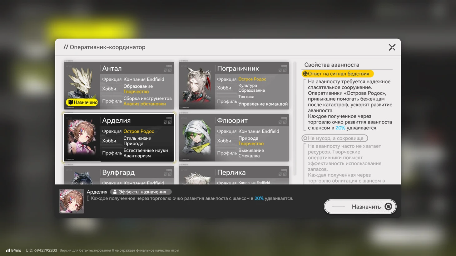 Не забудьте назначить любого оперативника на аванпост, чтобы получить бонусы при продаже. Антал полезен тем, что удваивает полученные облигации с шансом 20%, и таких пассивок у него две. Можно подобрать и кого-то еще, но у них меньше пассивок. Желтым текстом отмечены характеристики оперативника, которые обладают бонусами.