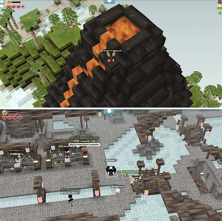 Сочетает элементы песочницы, экономики и даже крипто-технологий, что делает ее особенной среди подобных проектов. Игра использует стиль пиксельной воксельной графики, напоминающей Minecraft, но с более яркой, мультяшной эстетикой.
