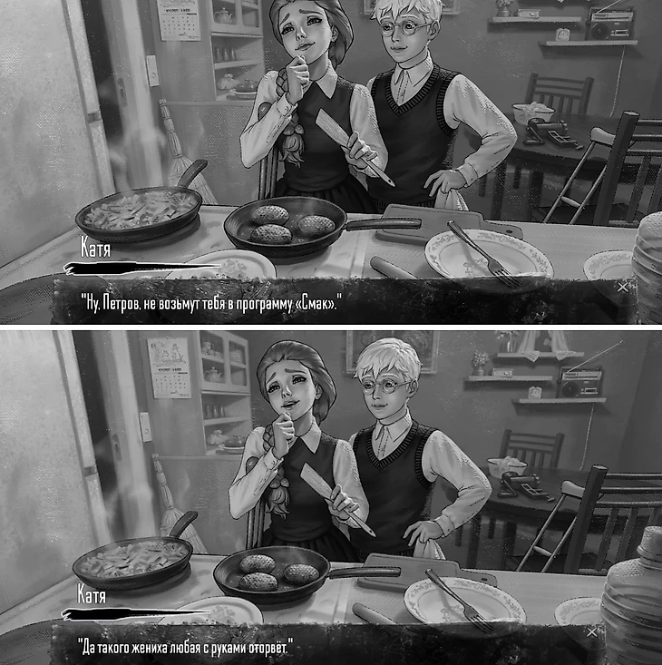 В середине пятого эпизода Антону придется сделать непростой выбор: продолжить отношения с Полиной или переключить внимание на Катю, которую ранее он спас от смерти. Если выберете Катю, герой проводит ее домой, где поможет приготовить ужин из ароматных котлет.