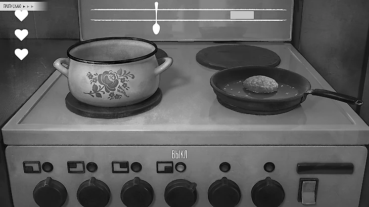 Кулинарная мини-игра заточена на реакцию. Нужно кликнуть мышкой в момент, когда шустрый ползунок ложки попадет на светлый отрезок. Постепенно отрезок будет уменьшаться, а скорость движения ложки расти. У вас есть 3 жизни – лучше заранее сохранитесь, ведь за испытание дают ачивки: