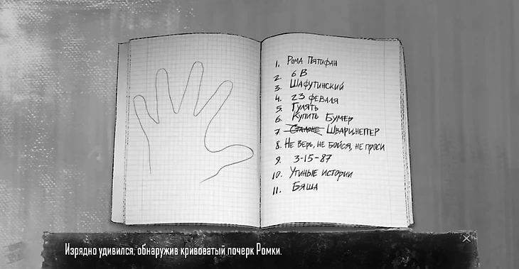 Антон может сознаться, что видел странного мужика. Тогда сотрудник даст возможность составить фоторобот, ведь парень здорово рисует. Правильно вспомните внешность мужчины – получите ачивку Steam, милиционер узнает человека на рисунке и похвалит Антона за зацепку и хорошие навыки рисования. Если ошибетесь, Тихонов скомкает портрет, а над Антоном посмеются.