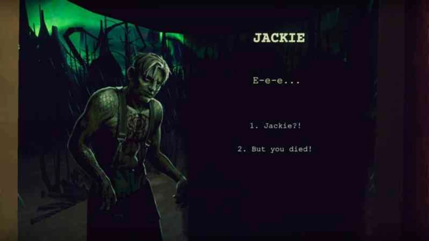 Забегая вперед, на вопрос «можно ли спасти Джеки» емкий ответ – «нет». Если он отправится к Мисти, то погибнет на исследовательской станции, но по крайней мере проведет мгновения с любимой женщиной. А если отправить к отцу, его участь окажется хуже смерти – он умрет, воскреснет и превратится в какое-то чудовище типа получеловека-полурыбы, который поклоняется Великому Древнему, и будет требовать отправить его к Мисти, без которой не может жить.