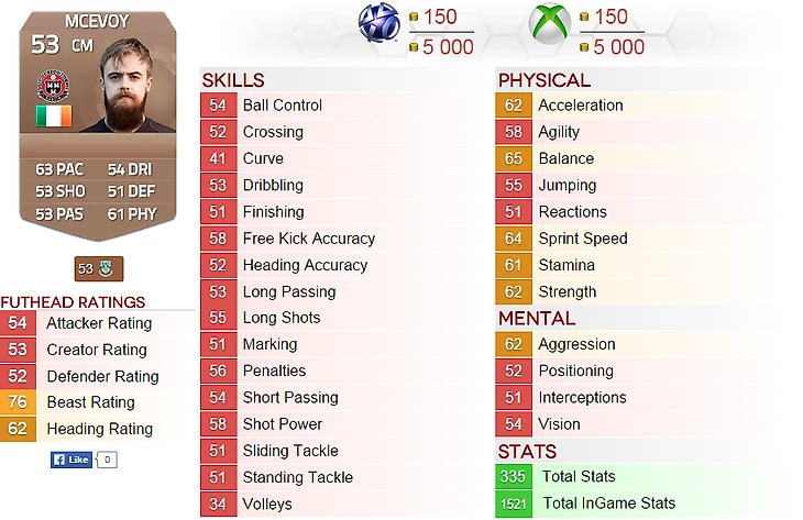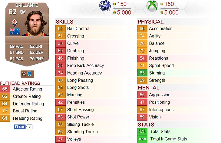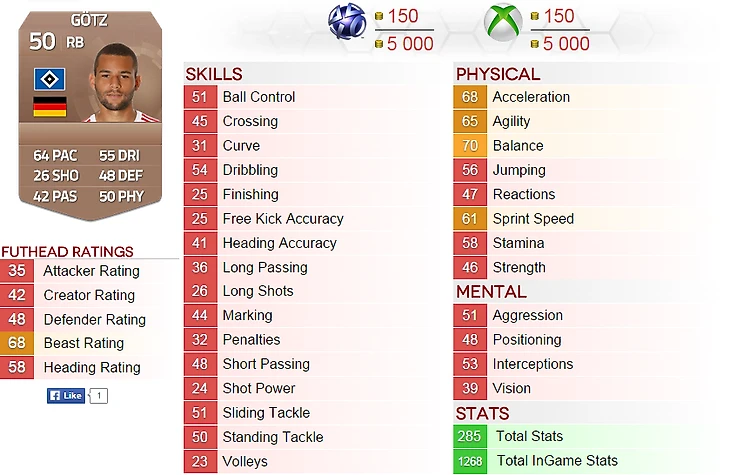 iPistoleroZ (Германия): Скорость на 3 лучше, чем у Швайнштайгера; Удары на 2 лучше, чем у Видича; Пас на 7 лучше, чем у Фелипе Сантана; Дриблинг на 6 лучше, чем у Мертесакера; Защита на 5 лучше, чем у Месси; Физика на 10 лучше, чем у Робиньо. Отличный игрок!