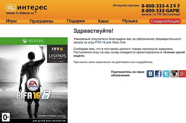 18:49 Продажи FIFA 16 для Xbox One в России задерживаются.